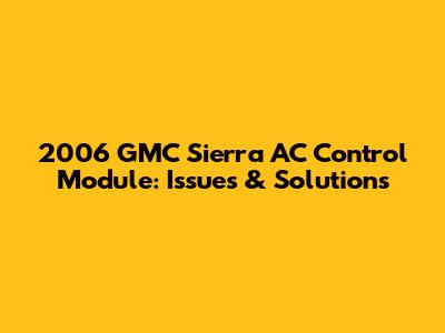2006 GMC Sierra AC Control Module: Issues & Solutions