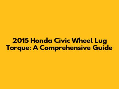2015 Honda Civic Wheel Lug Torque: Everything You Need To Know