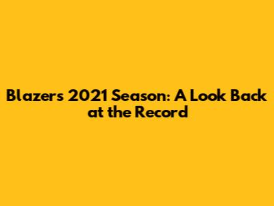 Blazers' 2021 Season: A Look Back At The Record