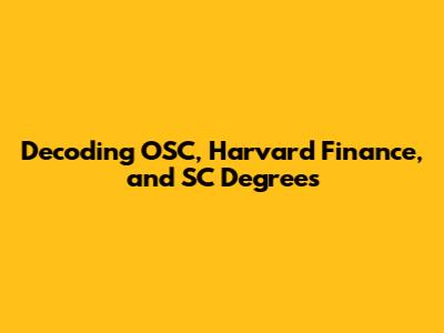Decoding OSC, Harvard Finance, And SC Degrees