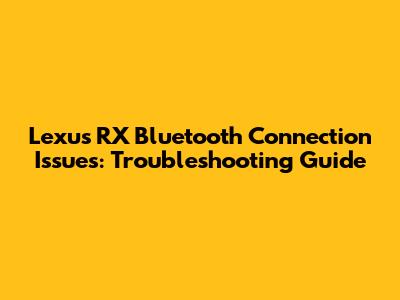 Troubleshooting Steps for Lexus RX Bluetooth Connectivity
