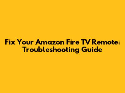 Fix Your Amazon Fire TV Remote: Troubleshooting Guide