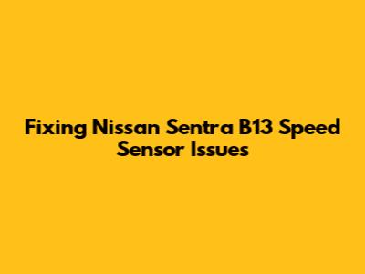 Fixing Nissan Sentra B13 Speed Sensor Issues