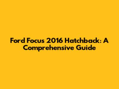 Ford Focus 2016 Hatchback: A Comprehensive Guide