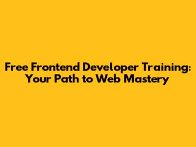 Free Frontend Developer Training: Your Path To Web Mastery