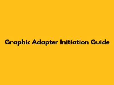 Graphic Adapter Initiation Guide
