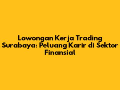 Lowongan Kerja Trading Surabaya: Peluang Karir Di Sektor Finansial