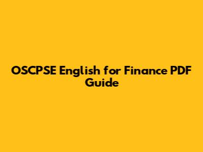 OSCPSE English For Finance PDF Guide