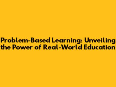 Problem-Based Learning: Unveiling The Power Of Real-World Education