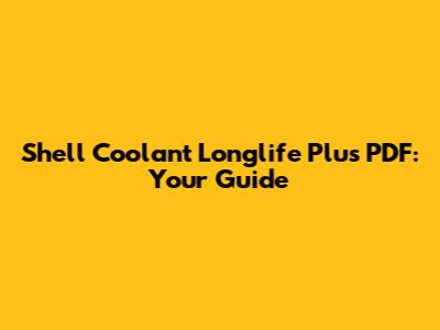 Shell Coolant Longlife Plus PDF: Your Guide
