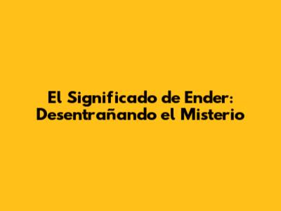 Significado De Ender: Mitos Y Realidades