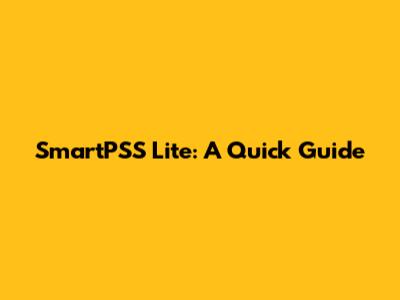 SmartPSS Lite: A Quick Guide