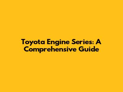 Toyota Engine Series: A Comprehensive Guide